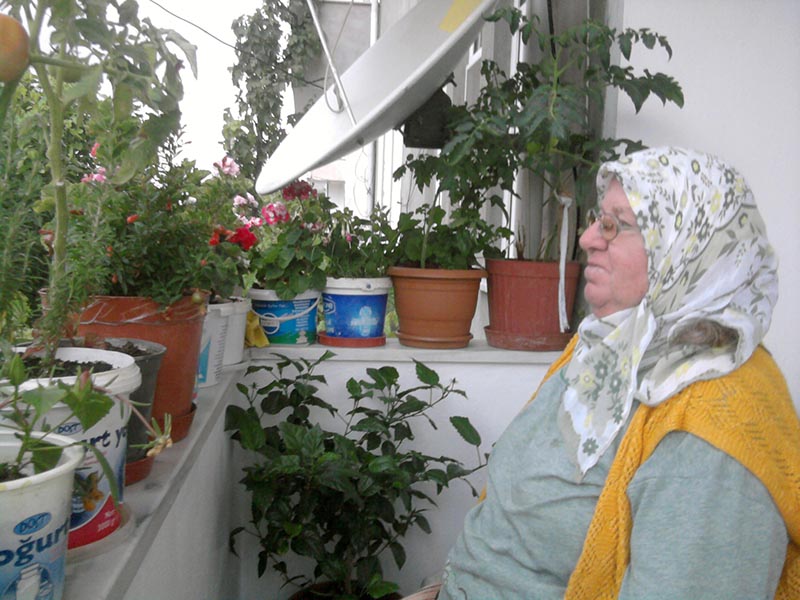 Annemin balkonu. Eşim ve ben "Büyük bir eve girelim, beraber yaşayalım" dedik olmadı. Hanımefendi bu yaştan sonra beton duvarlar arasına giremezmiş! İki bacağında iki platin, koltuk değnekleri elinde, "alt kata in, hiç olmazsa merdiven çıkma." diyoruz, "inmem" diyor. Halbuki küçük de olsa bir bahçesi var evin. "Sulaması, bakması, daha kolay olur" dedikse de olmuyor. Ne varsa bu balkonda? Bu balkon hatırına günde en az iki defa 20 merdiven çıkarak evine girmeye razı oluyor hazret. Babamın deyişiyle "kırk köyün ağası gibi" kuruluyor üstünde her daim bir hırka bulunan sandalyesine, elinde tespih, dilinde Allah, "Ben burada iyiyim" deyip, omuz silkiyor. Artık babam da kanıksadı durumu, "bu balkon annen için çok önemli" diyor, "burada çiçekleriyle uğraşıyor, geleni geçeni seyrediyor, bazen sohbet ediyor, bazen uyuyor, bir şeyler yapıyor işte..."
