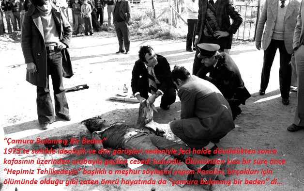 1975'te sahilde ideolojik ve dini görüşleri nedeniyle feci halde dövüldükten sonra kafasının üzerinden arabayla geçilen cesedi bulundu. Ölümünden kısa bir süre önce "Hepimiz Tehlikedeyiz" başlıklı o meşhur söyleşini yapan Pasolini, birçokları için ölümünde olduğu gibi zaten ömrü hayatında da "çamura bulanmış bir beden" di...