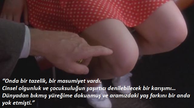 "Onda bir tazelik, bir masumiyet vardı. Cinsel olgunluk ve çocuksuluğun şaşırtıcı denilebilecek bir karışımı... Dünyadan bıkmış yüreğime dokunmuş ve aramızdaki yaş farkını bir anda yok etmişti."