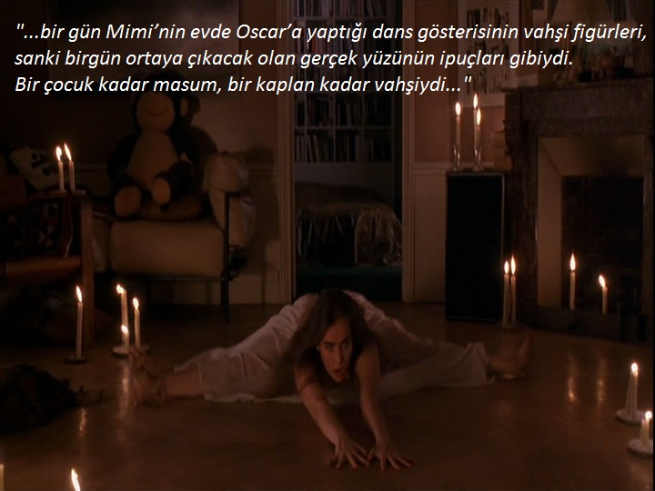 Mimi de artık küçük mutluluklarla yetinmeyi bilen birisi olmuştu. Ama bir gün Mimi'nin evde Oscar'a yaptığı dans gösterisinin vahşi figürleri, sanki birgün ortaya çıkacak olan gerçek yüzünün ipuçları gibiydi. Bir çocuk kadar masum, bir kaplan kadar vahşiydi. Ve artık hiç evden çıkmıyorlardı.